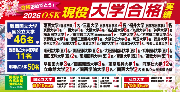 OSK尾崎数理研究会はトップレベル大学受験向けの進学予備校です。