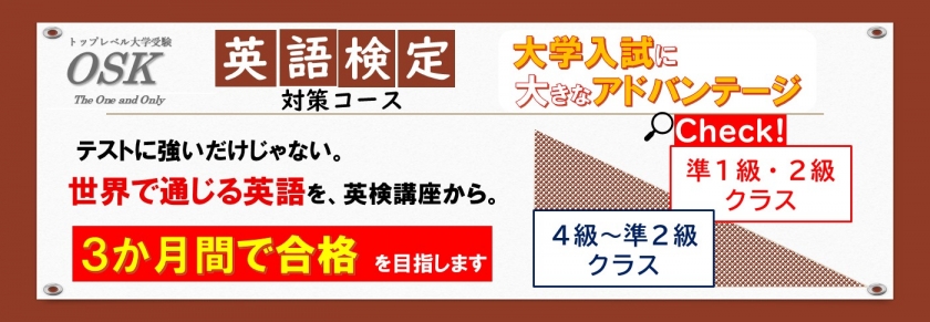 英検の出題傾向を軸とした講座内容。英検4級、3級、準2級クラスの3クラスで、OSK中学生クラスの在籍生対象の講座です。